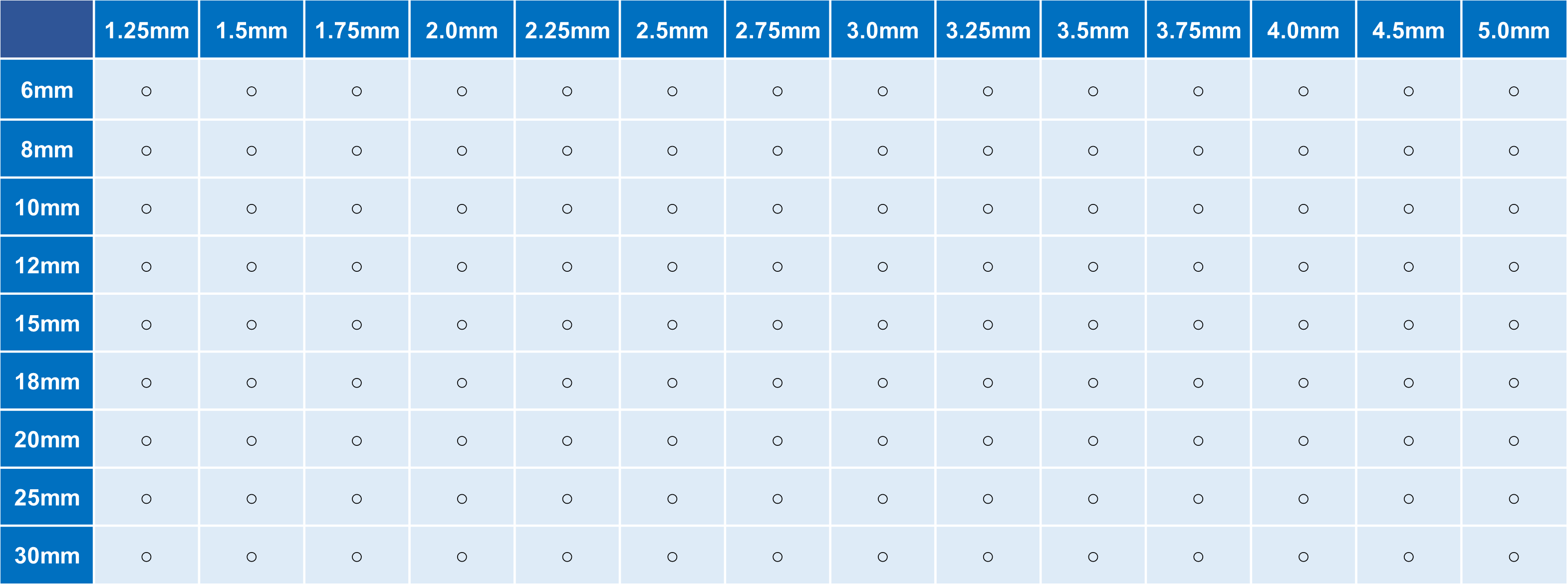 最小直径 1.25 mm,最大直径5 mm
